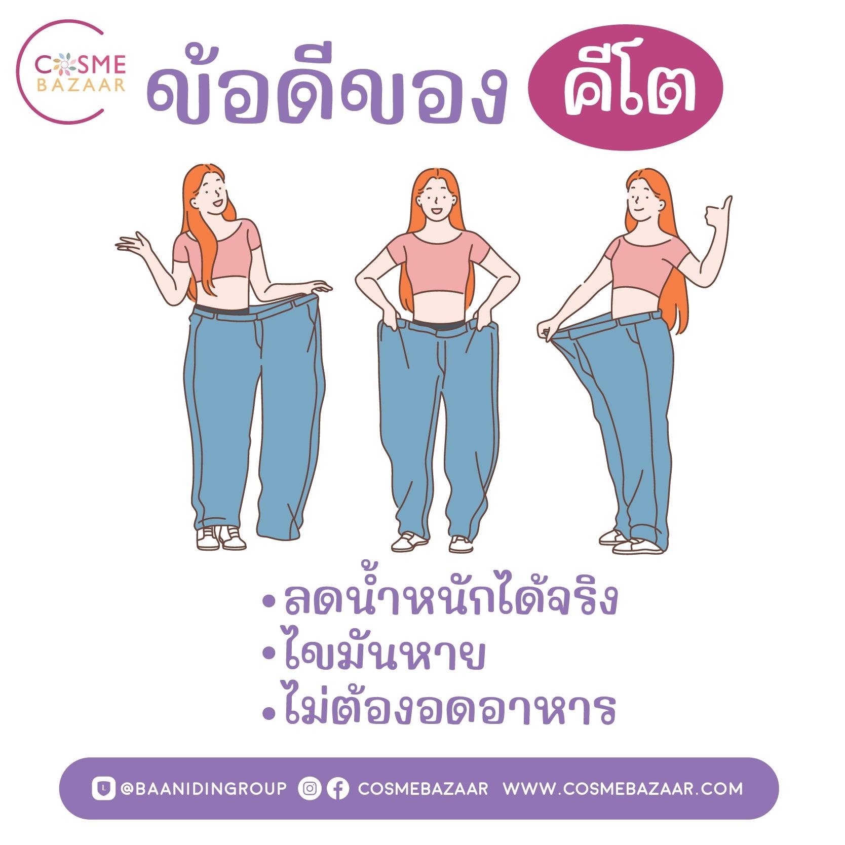 ลดน้ำหนักได้ ทำให้รู้สึกหิวน้อยลง น้ำหนักสามารถลดลงอย่างรวดเร็ว เนื่องจากสามารถลดพลังงานจากแป้งและน้ำตาลที่จะไปสะสมเป็นไขมันได้มากขึ้น