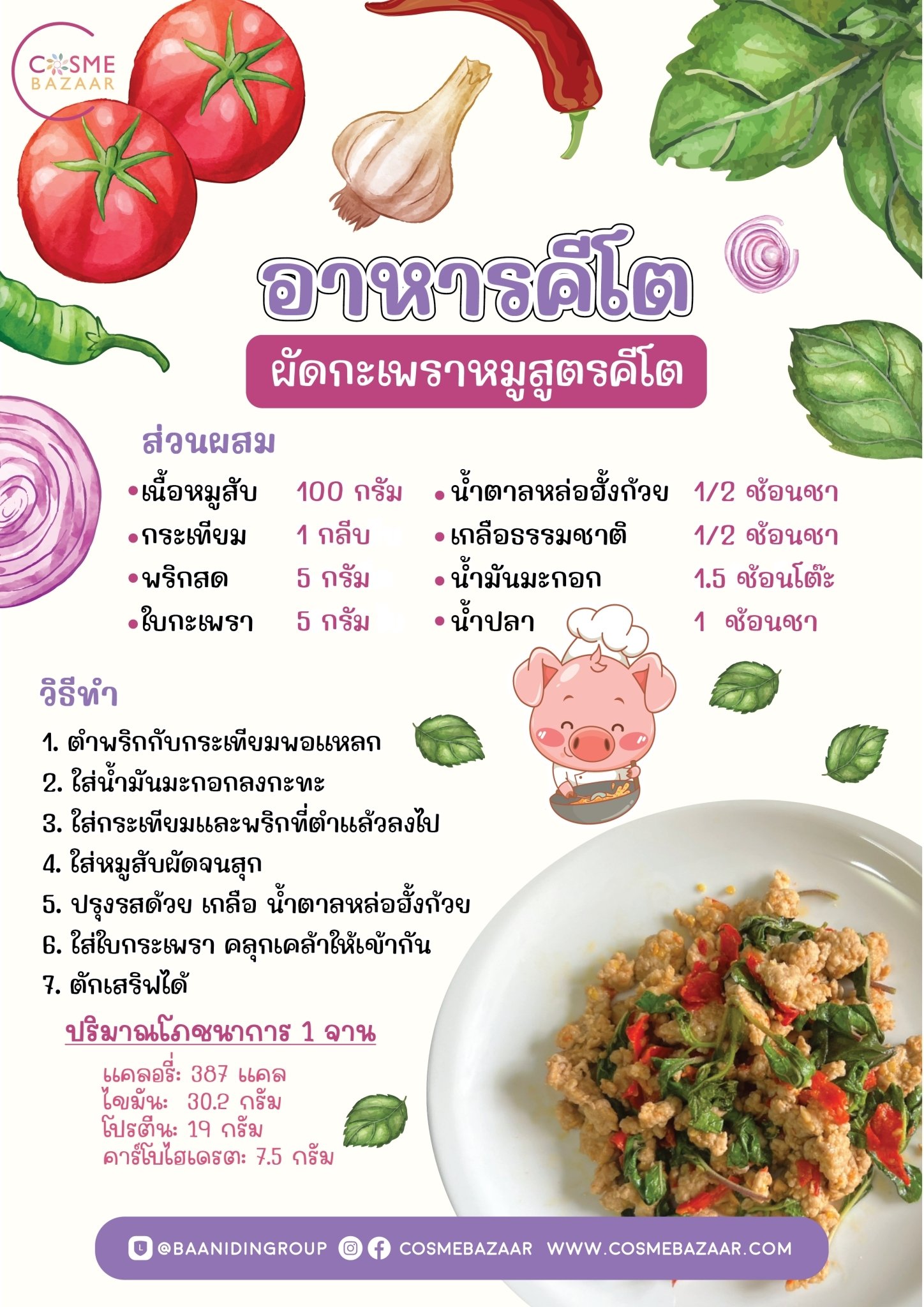 6. ใส่ใบกระเพรา คลุกเคล้าให้เข้ากัน