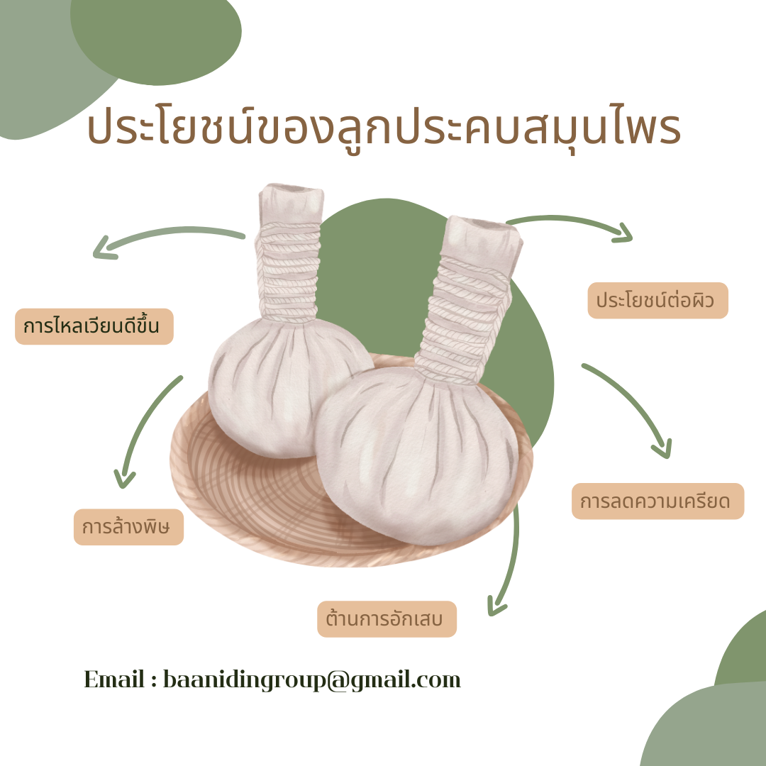 การล้างพิษ : สมุนไพรที่ใช้ในการประคบสามารถช่วยกระตุ้นการระบายน้ำเหลือง ช่วยในการกำจัดสารพิษออกจากร่างกาย